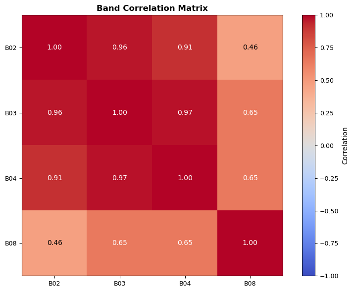 - π Performed Multi-band Analysis: Calculated vegetation indices and band correlations