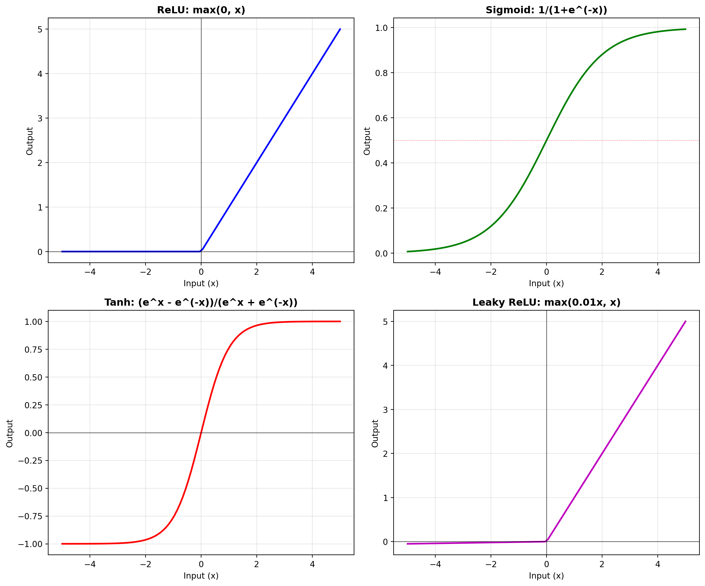 Activation functions introduce non-linearity, which is crucial for neural networks to learn complex patterns. Let’s explore the most common ones: